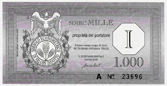 In sostanza il progetto tecnicamente parlando si sviluppò lungo questa direttrice: il cittadino si recava e cambiava il SIMEC alla pari con la lira. Poniamolo così: il cittadino depositava centomila lire (eravamo ancora alla vecchia ma molto più funzionale lira) e prendeva in cambio centomila SIMEC. I centomila SIMEC in mano alla persona che effettuava il cambio diventavano duecentomila cioè il doppio, perché il SIMEC per convenzione valeva il doppio della lira, e siccome lui l'accettava e accettava, nel contempo, anche di partecipare alla convenzione, consentiva la nascita del valore convenzionale che non ha riserva in coerenza all’abolizione della riserva aurea avvenuta con la cessazione degli accordi di Bretton Woods. Il SIMEC era senza riserva: come, ad esempio, un francobollo d'antiquariato. Il cittadino andava dal commerciante a fare la spesa e quest'ultimo accettava i SIMEC per il doppio perché convenzionalmente valeva il doppio. Quando i cittadini, dunque andavano a fare il cambio questo avveniva per il doppio, perché tutti quanti lo accettavano per il doppio. Tutto questo risultò un vero e proprio volano per l’economia locale tanto più che il professor Auriti sostenne:«La gente è entusiasta perché qui è rinata Guardiagrele. Quando è entrato sul mercato il valore indotto del SIMEC è ritornato il sangue nell'economia», permettendo concretamente ai cittadini di toccare con mano la rinascita economica e sociale del paese che purtroppo crollò in virtù del sequestro dei SIMEC su disposizione della Procura di Chieti e non solo. Credo che questa iniziativa meriti una certa attenzione, poiché potrebbe concretamente trovare una sua riproposizione, su larga scala, dato che i SIMEC sequestrati furono successivamente dissequestrati palesando, nell’occasione, la legittimità e la credibilità di quel famoso esperimento di grande caratura come d’altronde ha dimostrato durante tutto l’arco della sua vita il Genio Auriti lottatore insuperabile del sistema bancario. Dott. Gianluigi Mucciaccio |